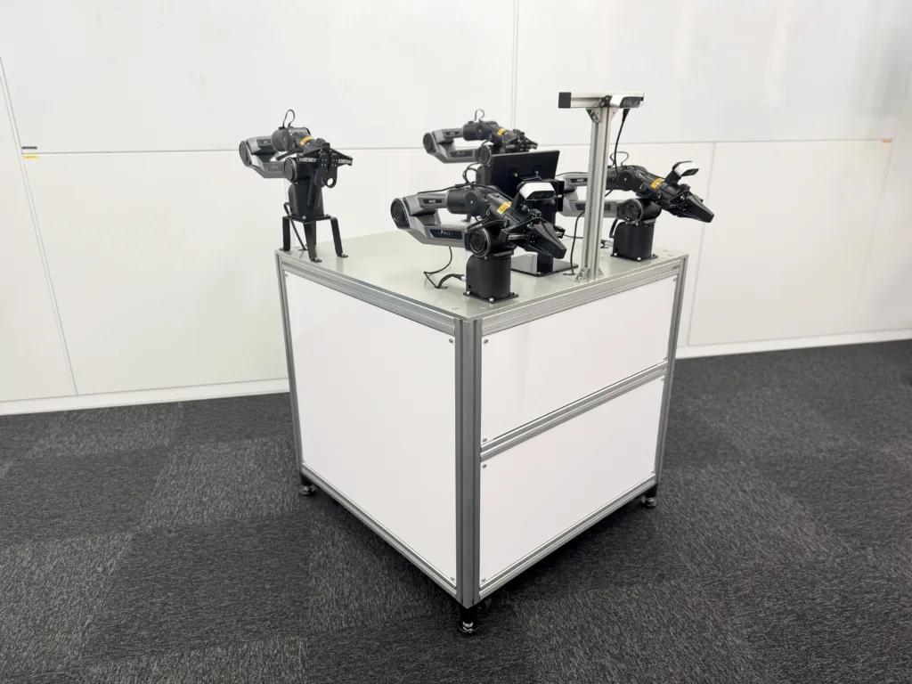 ・ロボットベンチャー様向け・Dual Arm用位置関係の設計・ロボットアーム取付用治具設計製作・カメラ取付用治具設計製作・URDF作成・アルミフレームの組立